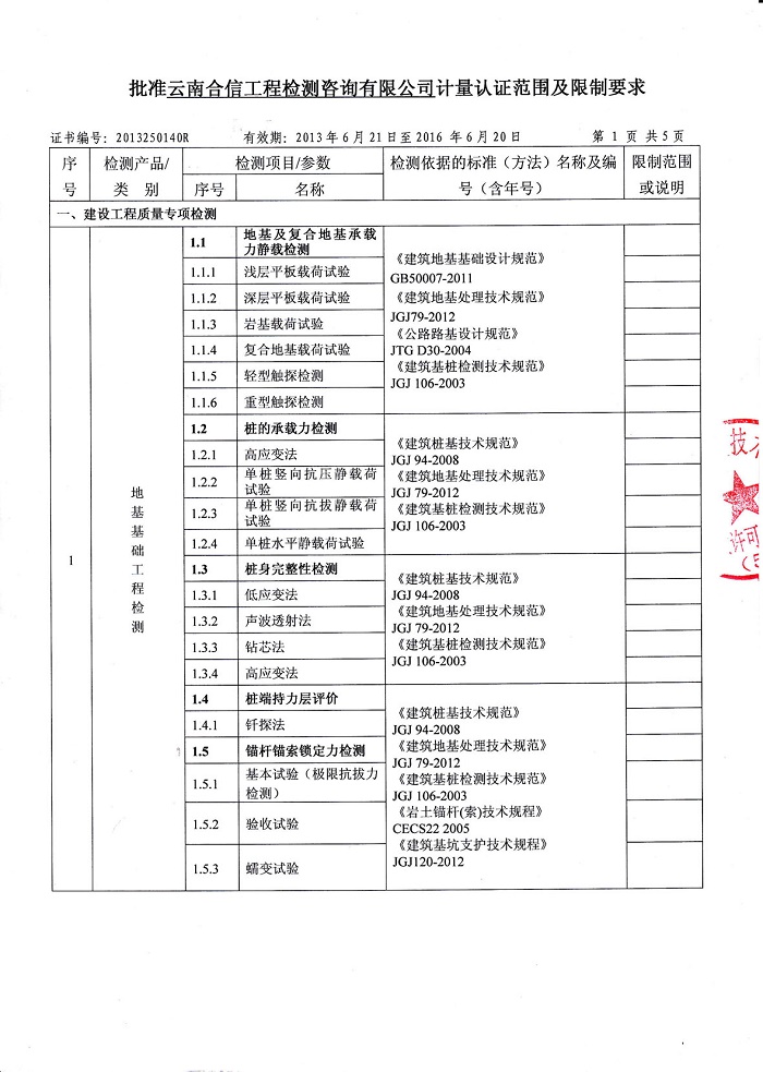云南合信工程檢測咨詢有限公司地基基礎(chǔ)工程檢測主要能力為
