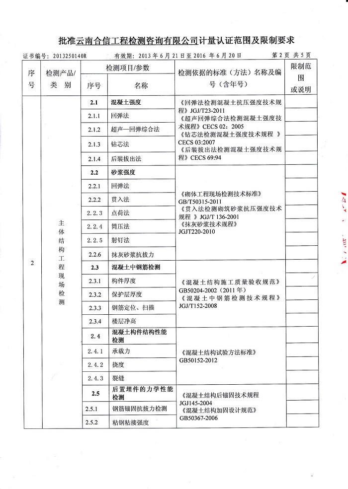 云南合信工程檢測咨詢有限公司主體結(jié)構(gòu)工程檢測主要能力為: