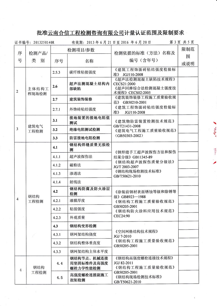 云南合信工程檢測咨詢有限公司鋼結(jié)構(gòu)結(jié)構(gòu)工程檢測主要能力為: