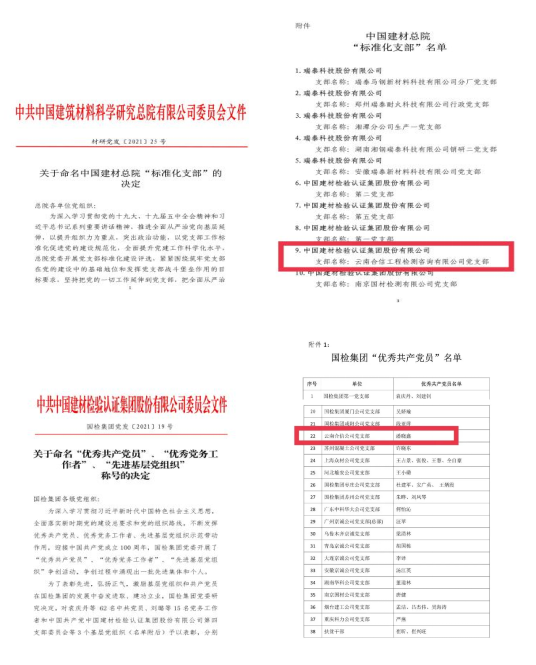 國檢集團(tuán)·云南合信黨支部榮獲中國建材總院“標(biāo)準(zhǔn)化支部”稱號(hào)、支部黨員獲國檢集團(tuán)“優(yōu)秀共產(chǎn)黨員”榮譽(yù)稱