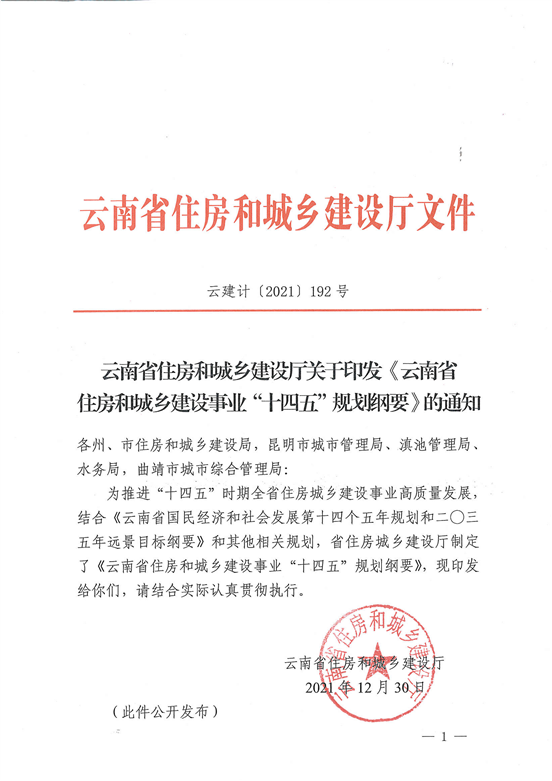 云南省住房和城鄉(xiāng)建設廳關于印發(fā)《云南省住房和城鄉(xiāng)建設事業(yè)“十四五”規(guī)劃綱要》的通知